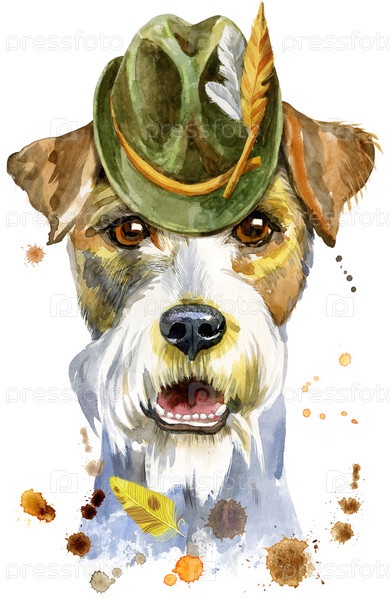 Акварельный портрет эрдельтерьера в тирольской шляпе