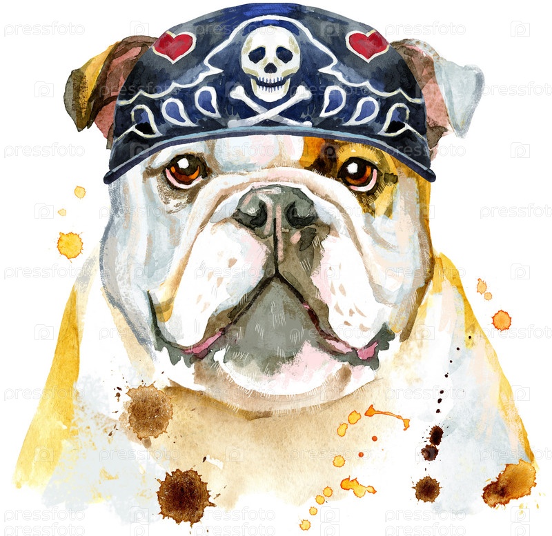 Акварельный портрет бульдога в байкерской бандане