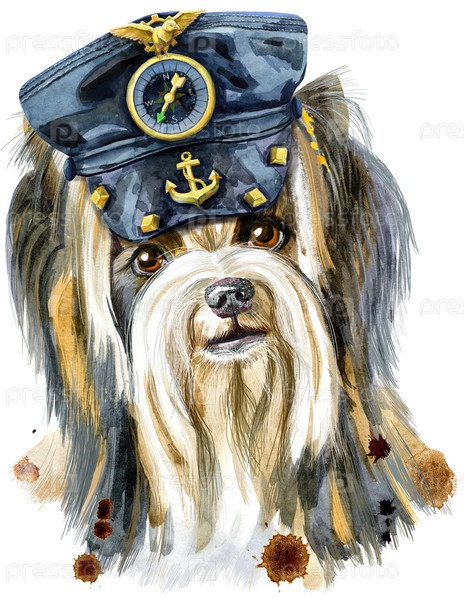 Собака, йорк на белом фоне. Ручной рисунок сладкого питомца. Символ года 2018