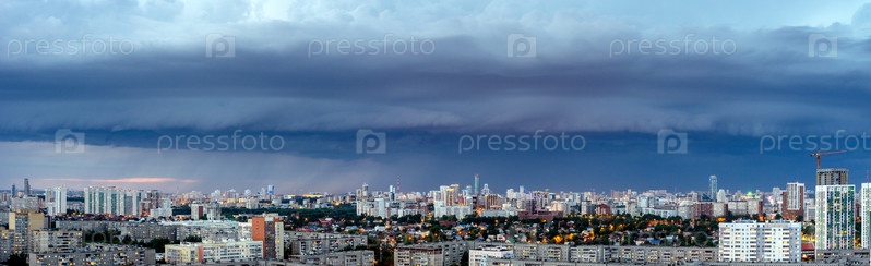Рассветные облака над мегаполисом раннего заката в Екатеринбурге