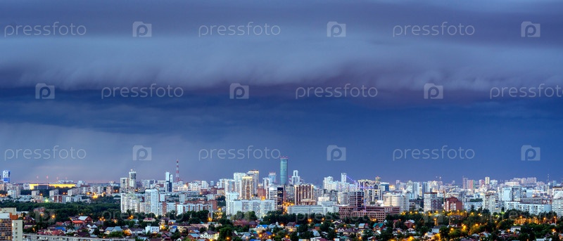 Рассветные облака над мегаполисом раннего заката в Екатеринбурге