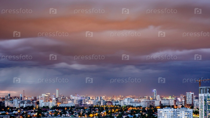 Рассветные облака над мегаполисом раннего заката в Екатеринбурге