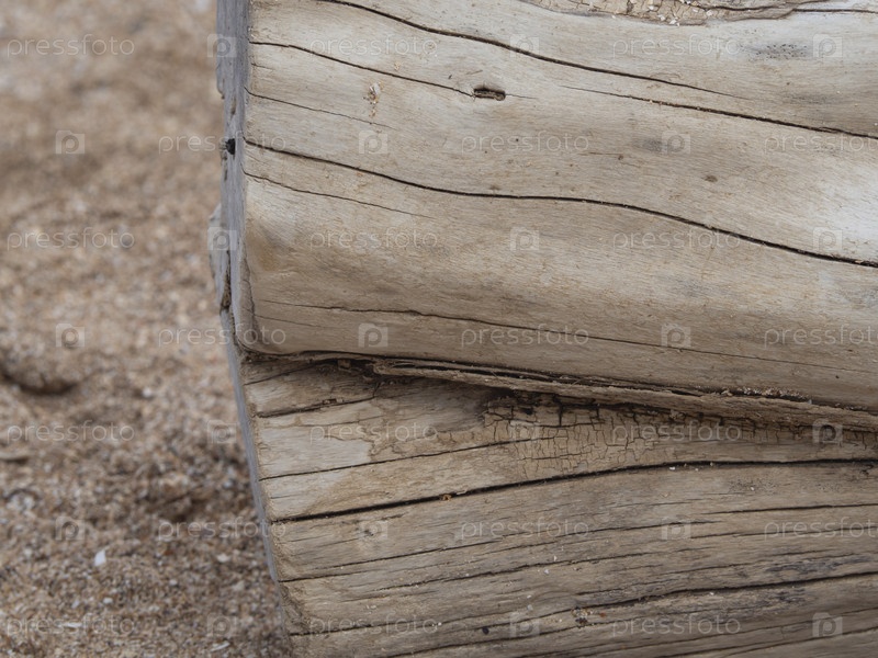 Естественный текстурированный фон. Старая выветренная гнилая потрескавшаяся корявая грубая деревянная виньетка гранж-текстура ствола дерева на песчаном пляже
