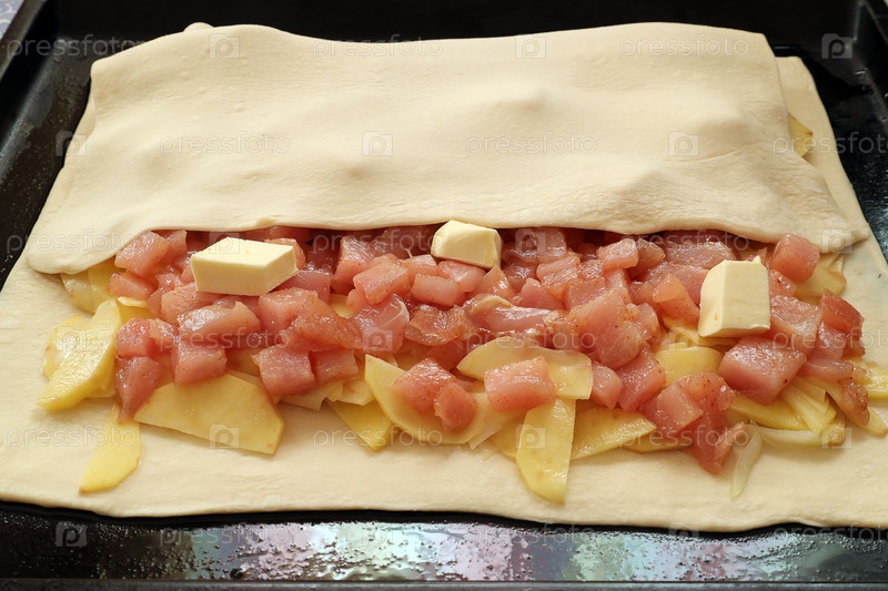 Приготовление пирога с курицей и картошкой - формовка на противне
