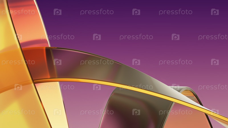 Пересечение прозрачных золотых лент. Стеклянные волнистые линии с отраженными лучами света. Элемент дизайна для баннера или обоев. 3D-визуализация