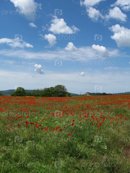 Поле маков в облачную погоду