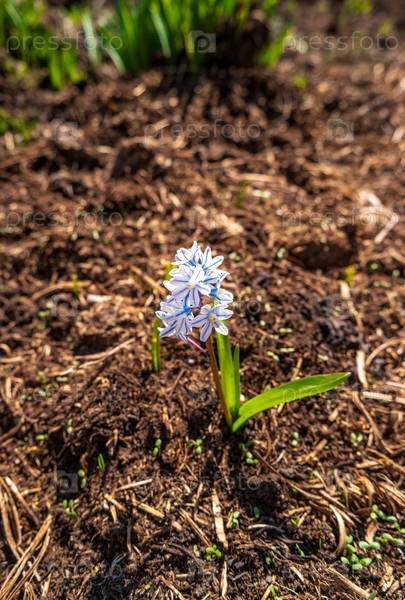 Пушкиния весенняя примула в саду. Цветущие цветы растения
