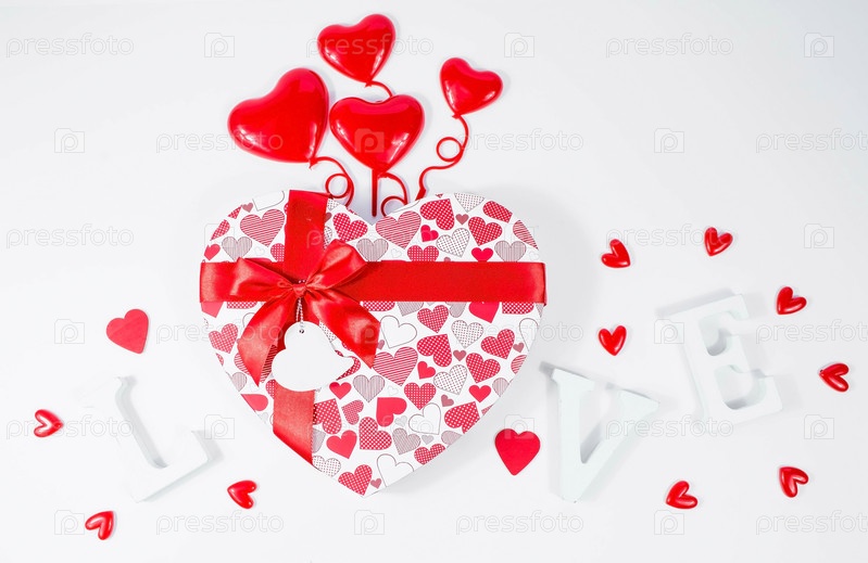 День святого Валентина. Подарочная коробка в виде сердца на белом фоне. Подарок женщинам на праздник. Концепция доставки. Скопируйте пространство