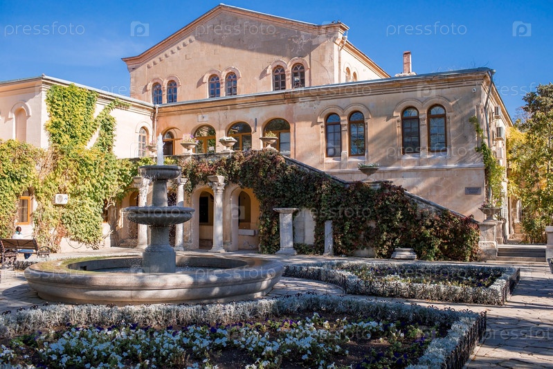Херсонес Таврический музей-заповедник. Россия, Крым. Византийский дворик рядом со зданием со средневековой экспозицией Херсонесского музея