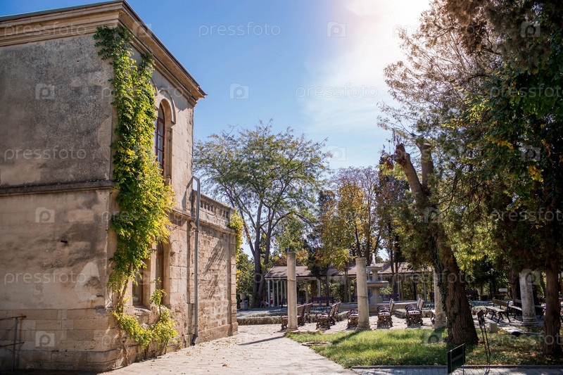Херсонес Таврический музей-заповедник. Россия, Крым. Византийский дворик рядом со зданием со средневековой экспозицией Херсонесского музея