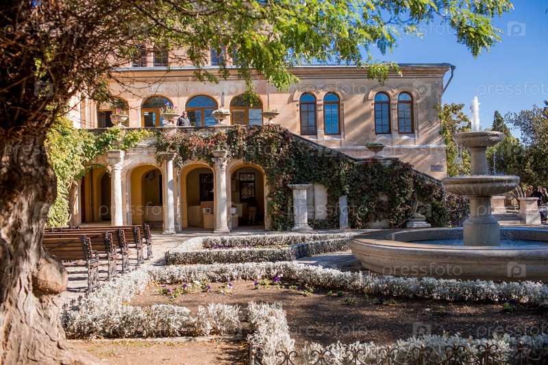 Херсонес Таврический музей-заповедник. Россия, Крым. Византийский дворик рядом со зданием со средневековой экспозицией Херсонесского музея