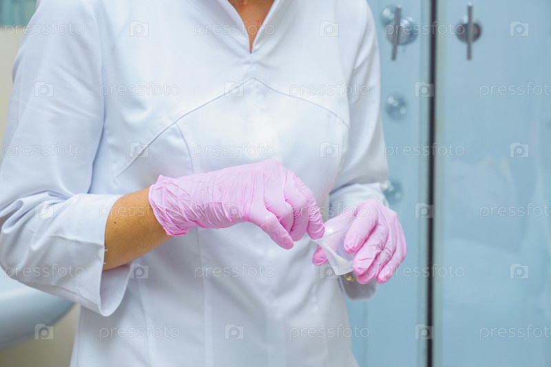 Косметолог готовит пилинг в мерном контейнере для нанесения на лицо