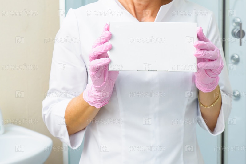 Крупным планом фото рук косметолога, держащих белую коробку с наполнителями. Здравоохранение, медицина и фармация. Макет для вашего проекта