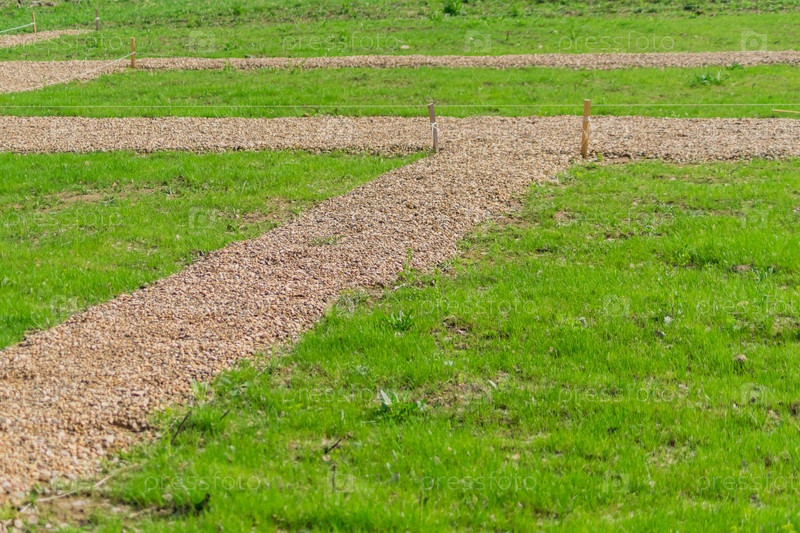 Разметка садовых дорожек на строительной площадке. Строительство загородного дома