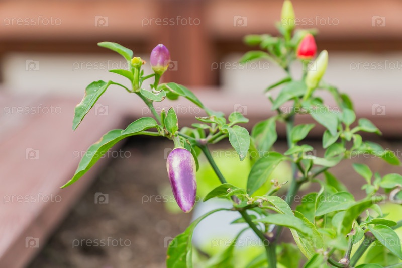 Крупный план фиолетового декоративного перца, растущего на ферме