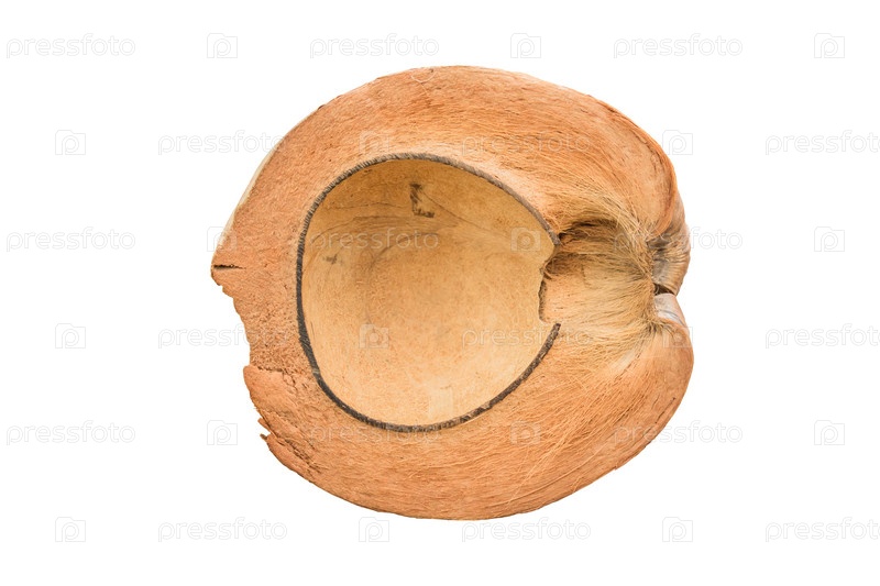 Пустая скорлупа кокоса на белом фоне