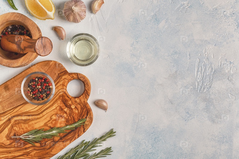 Разделочная доска и специи для приготовления пищи