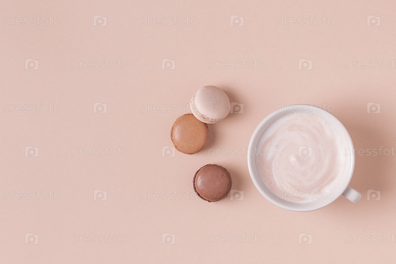 Чашка кофе с миндальным печеньем на пастельном фоне