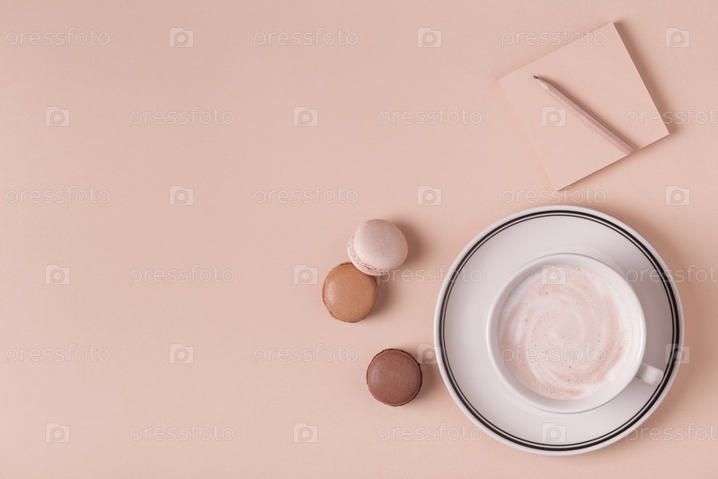 Чашка кофе с миндальным печеньем на пастельном фоне