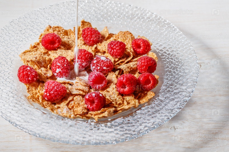 Хлопья пшеничные с малиной и молоком
