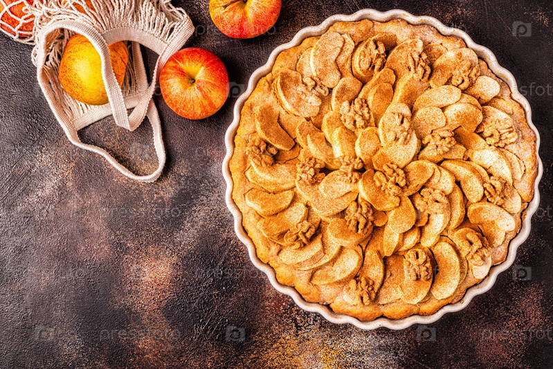 Яблочный пирог с грецкими орехами и корицей