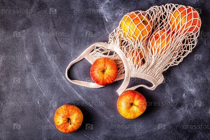 Свежие яблоки в сетчатом мешке