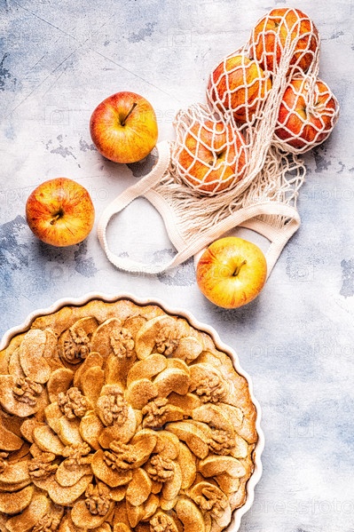 Яблочный пирог с грецкими орехами и корицей