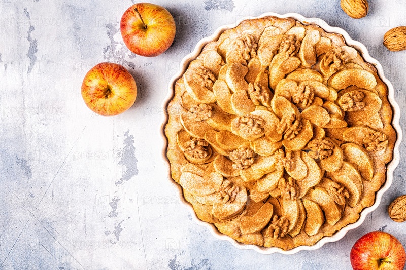 Яблочный пирог с грецкими орехами и корицей