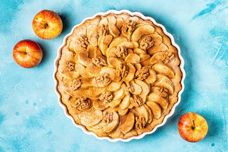 Яблочный пирог с грецкими орехами и корицей