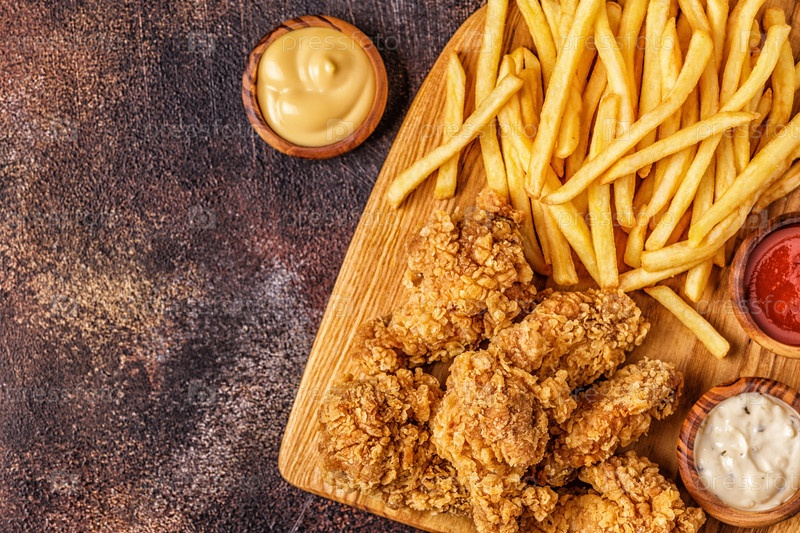 Жареные куриные крылышки с картофелем фри