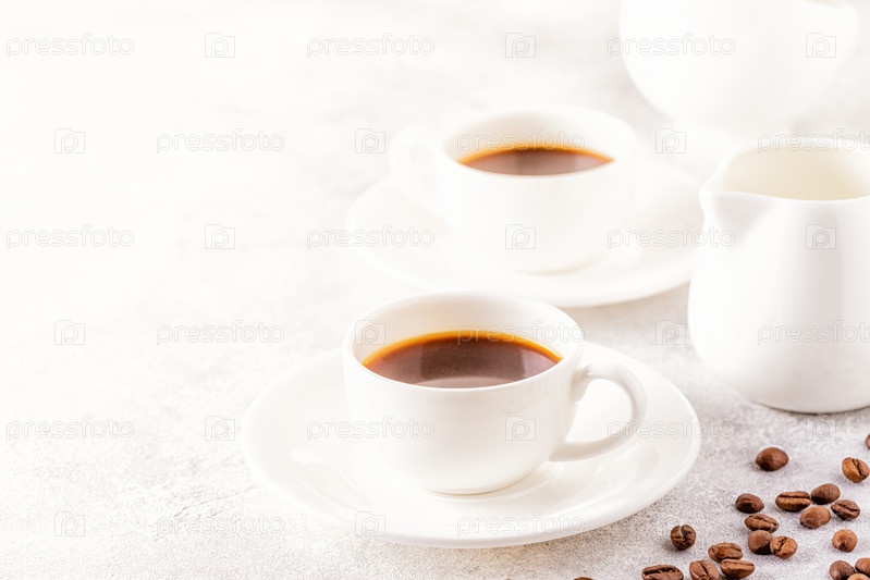 Концепция утреннего кофе, кофе-брейк на светлом фоне