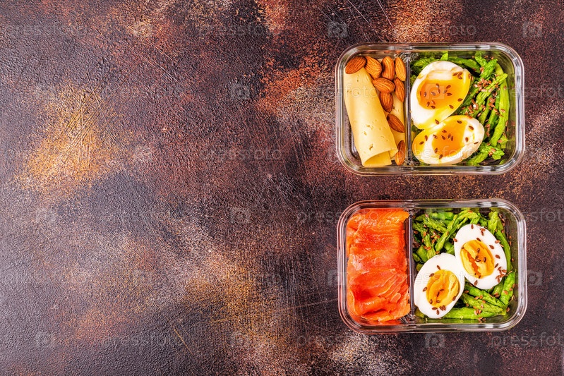 Здоровый сбалансированный ланч-бокс, обед на кетогенной диете