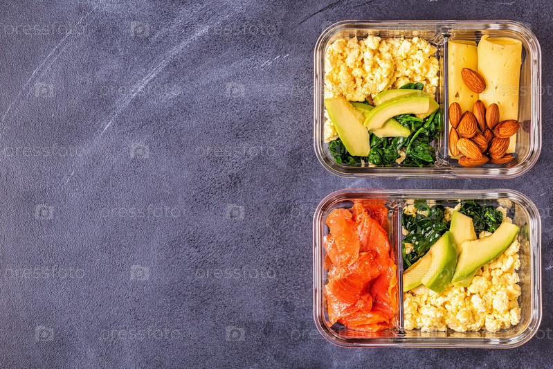 Здоровый сбалансированный ланч-бокс, обед на кетогенной диете