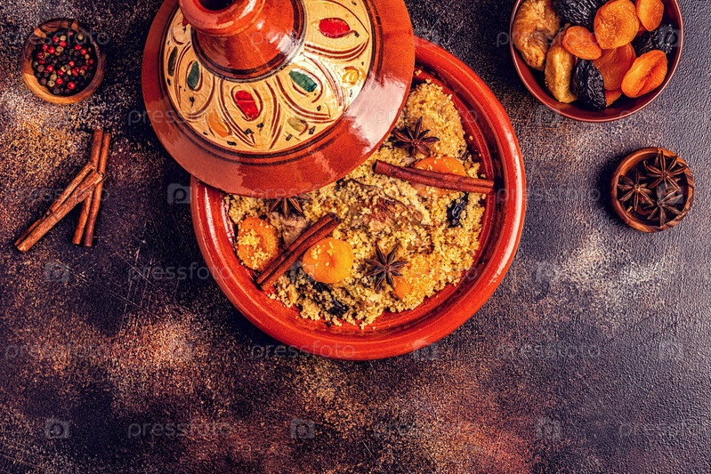 Традиционный марокканский тажин из курицы с сухофруктами и специями
