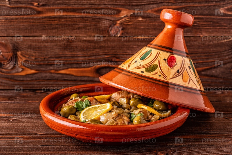 Традиционный марокканский куриный тажин с оливками и солеными лимонами