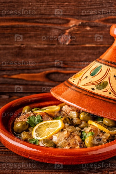Традиционный марокканский куриный тажин с оливками и солеными лимонами