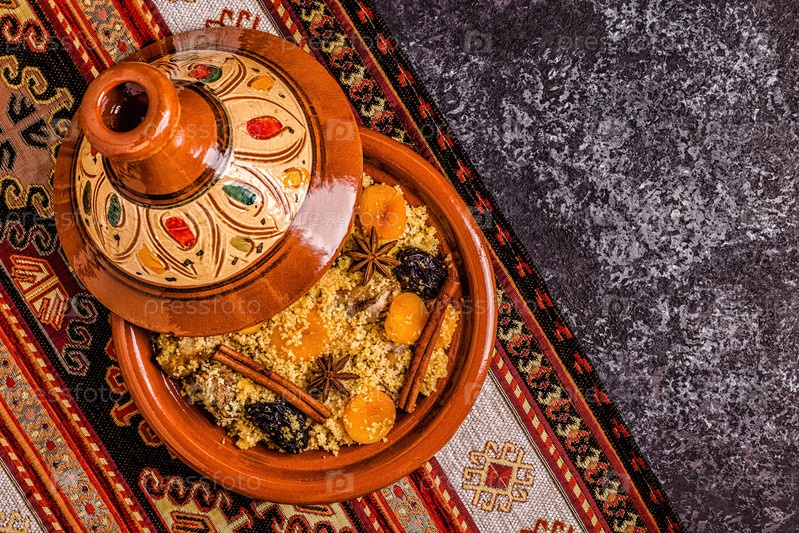Традиционный марокканский тажин из курицы с сухофруктами и специями
