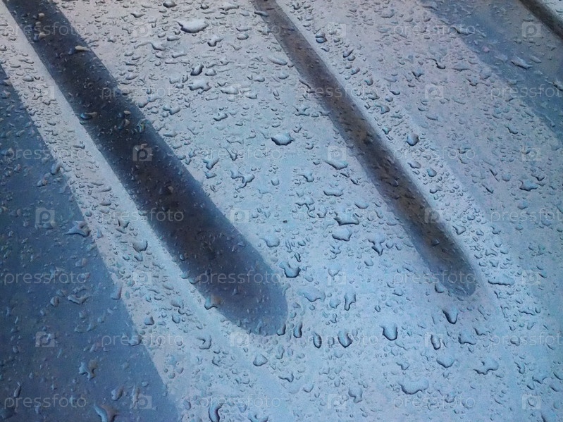 Капли дождевой воды на синей металлической текстуре капота автомобиля полезны в качестве фона