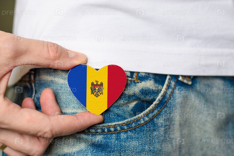 Патриот Молдовы! Деревянный значок с молдавским флагом в форме сердца в мужской руке