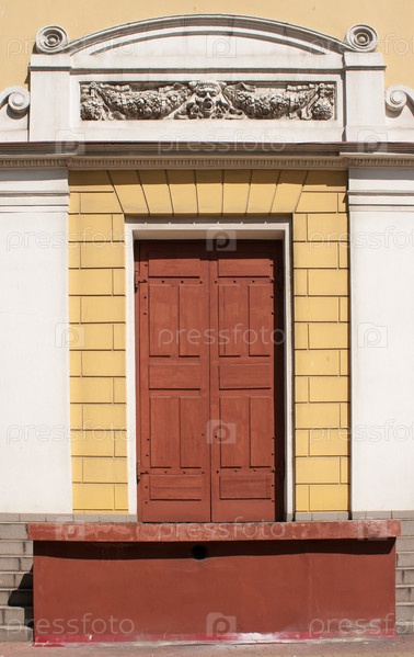 Входная дверь украшена барельефами
