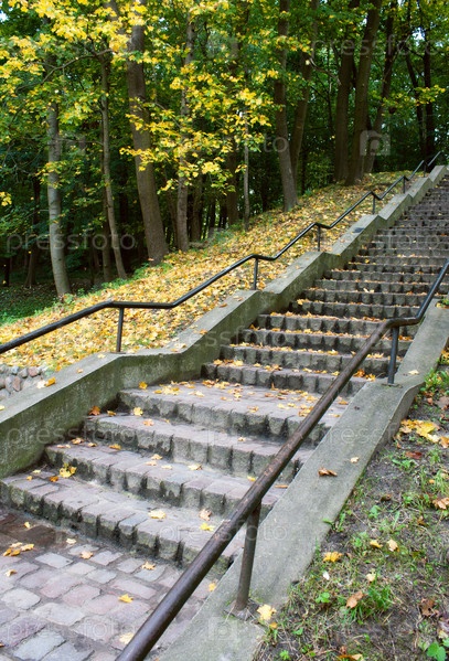 Лестница в городском парке в осенний яркий солнечный день
