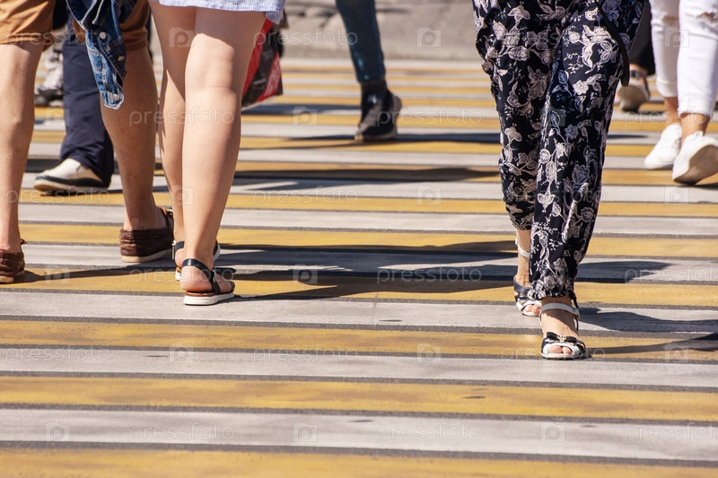 Люди переходят улицу по пешеходному переходу