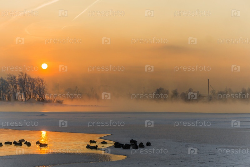 Морозное утро над Енисеем в центре Красноярска