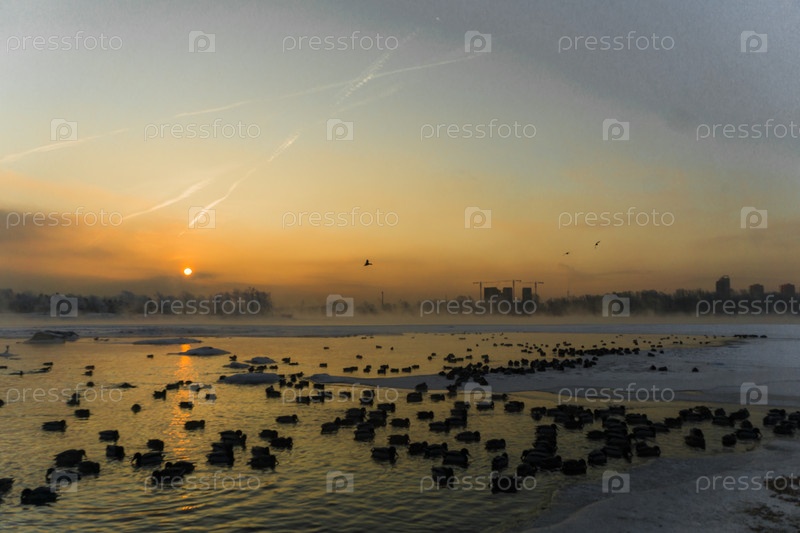 Морозное утро над Енисеем в центре Красноярска