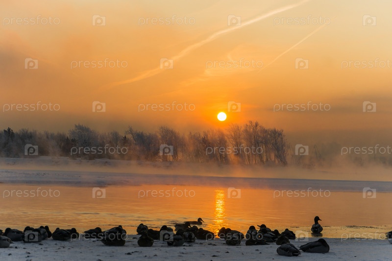 Морозное утро над Енисеем в центре Красноярска