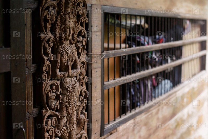 Картина Будды и деревянная фреска. Резьба по дереву