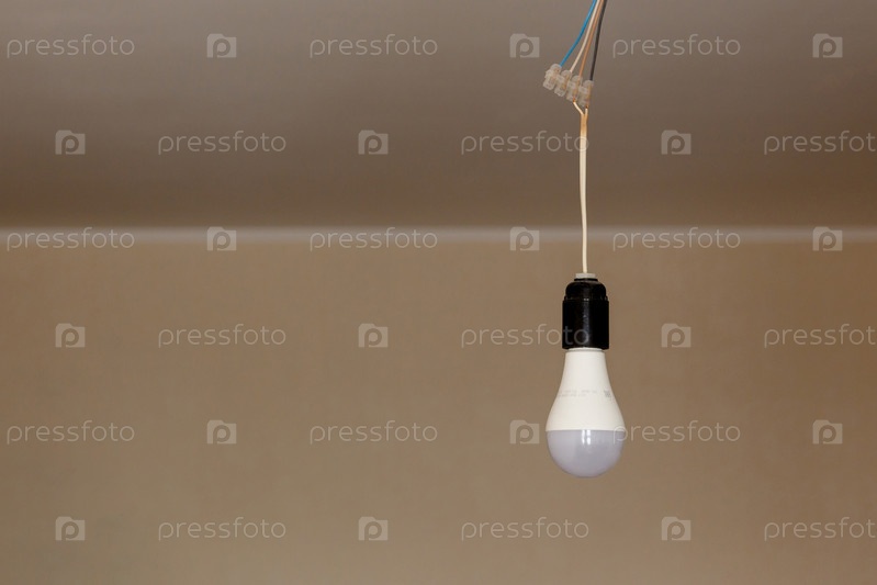 Светодиодная энергосберегающая лампа висит на кабеле