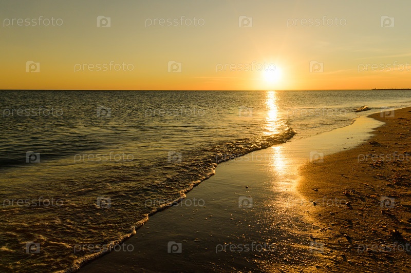 Красивый закат у моря. Морской пейзаж. Спокойное вечернее море
