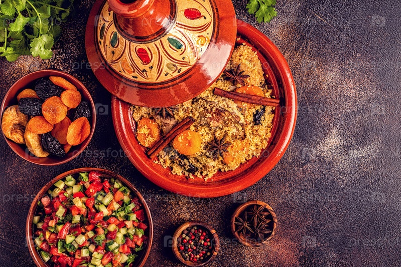 Традиционный марокканский тажин из курицы с сухофруктами и специями
