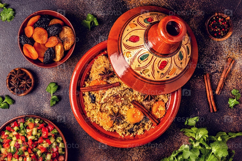 Традиционный марокканский тажин из курицы с сухофруктами и специями